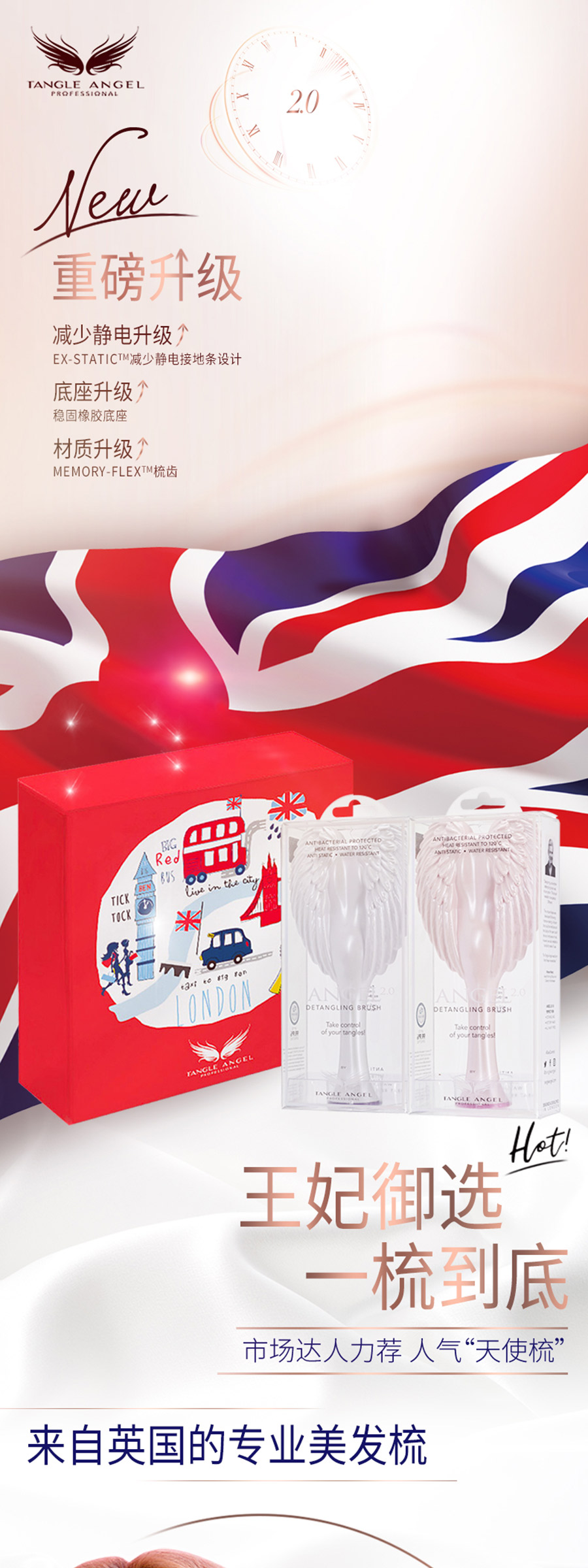 Tangle Angel天使美发梳,英国王室御用发型师Richard ward 根据自己20多年的美发经验研发推出。他不但在伦敦拥有由近90位美发专家组成的沙龙,更是凯特王妃等英国政要及众多明星御用的发型师,同时还拥有自己的专栏和电视节目,可谓称得上是时尚界的著名人物。