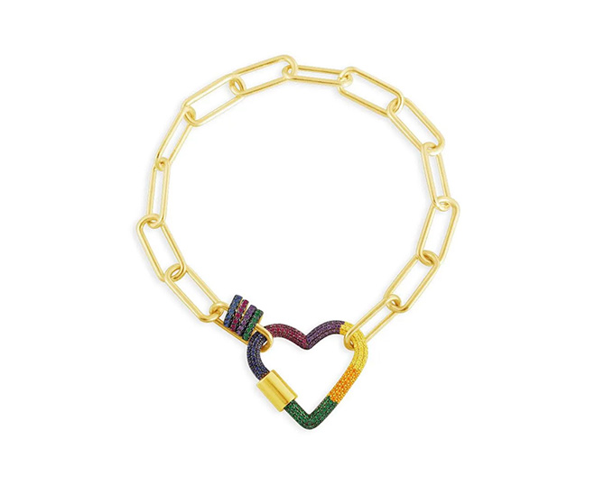 以这款心形吊坠锁链手链为你的搭配注入更多街头元素。其前卫的造型及彩虹色将是提升风格的完美时尚单品。