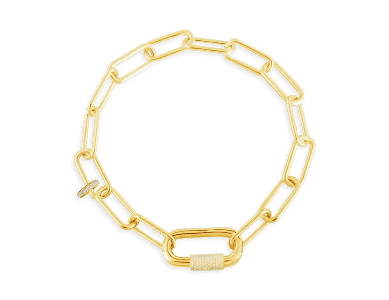 绽现光芒的锁链手链,配有人手点缀的石粒任你为造型营造摇滚氛围。饰扣可调节,以完美贴合你的手腕。