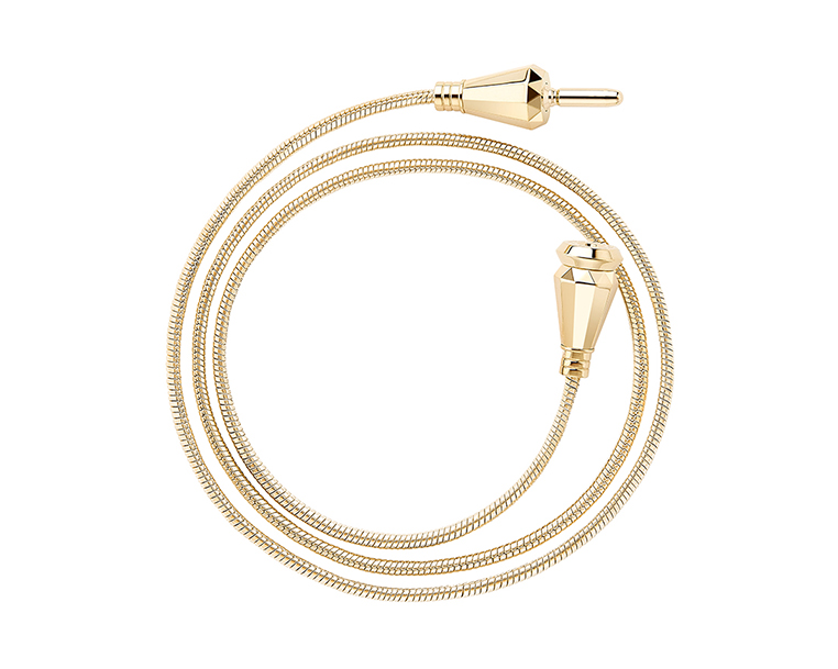 在这一全新系列中,宝诗龙展现女性的自由精神,重新定义珠宝作品的佩戴方式。Jack系列既非传统手镯亦非项链,绝不墨守成规,始终求新求变。这款作品采用三圈黄金链环设计。18K黄金,