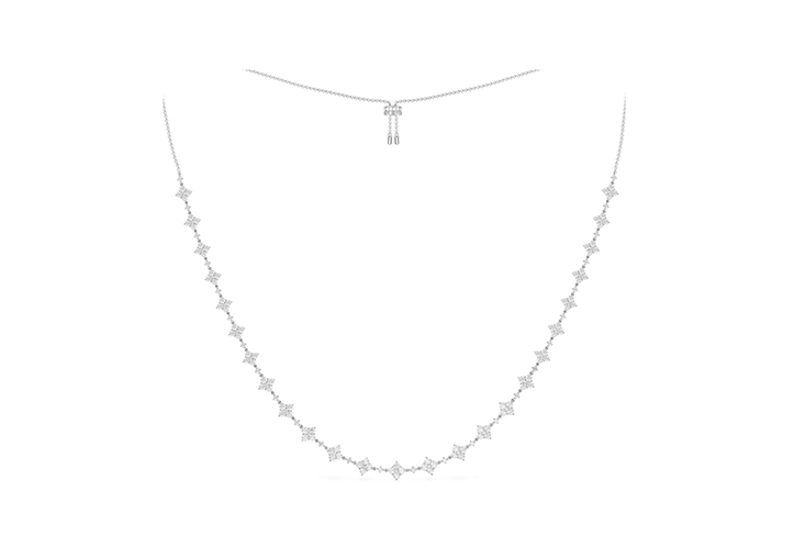 这款项链采用纯银手工制成,微镶了白色氧化锆石。