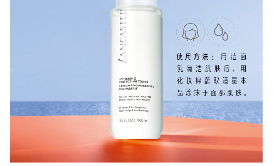 用洁面乳清洁肌肤后,化妆棉蘸取适量本品涂抹于面部肌肤。