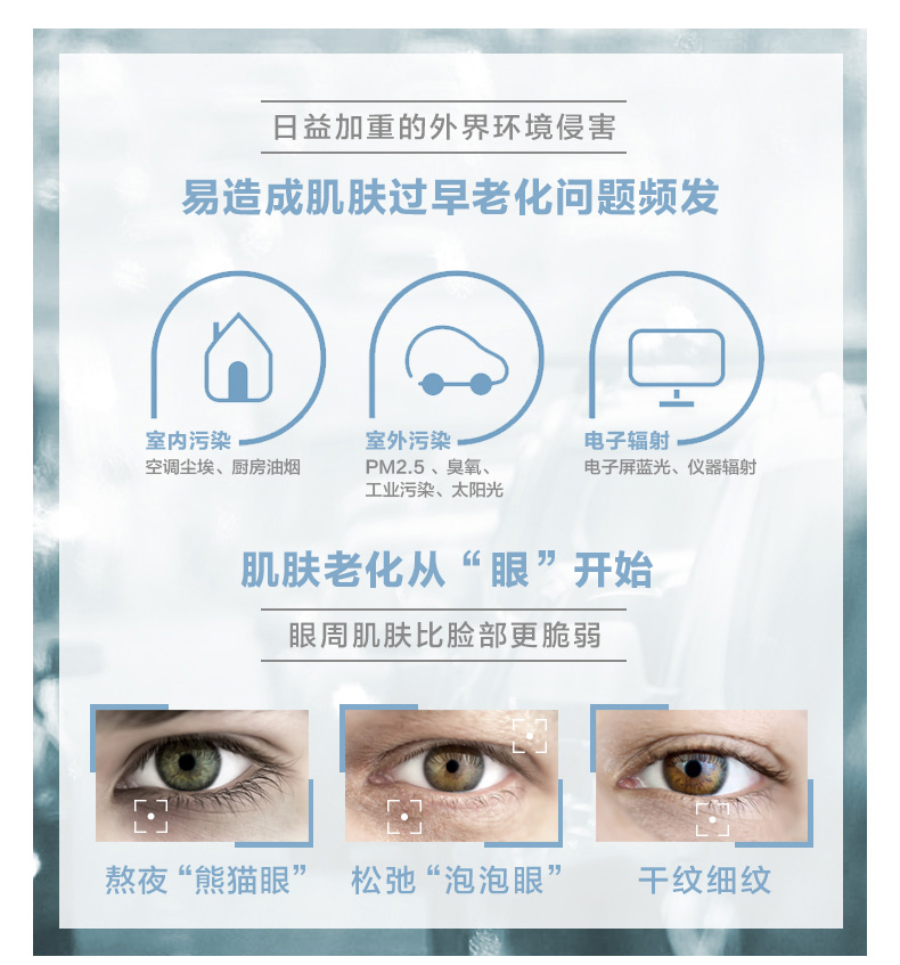 用洁面乳清洁肌肤后,取适量本品涂抹于洁净的眼部四周。