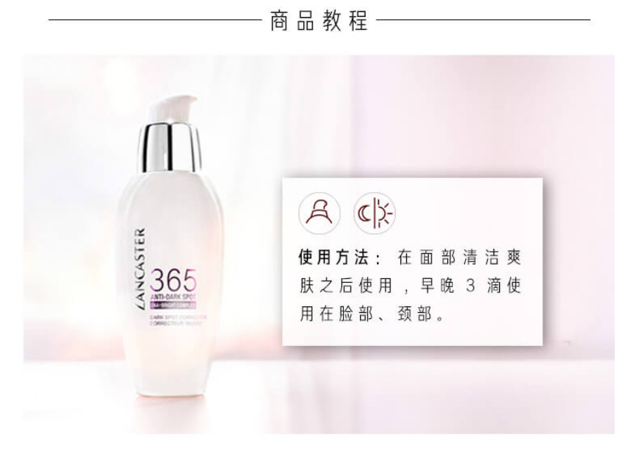 在面部清洁爽肤之后使用,早晚3滴使用在脸部、颈部。