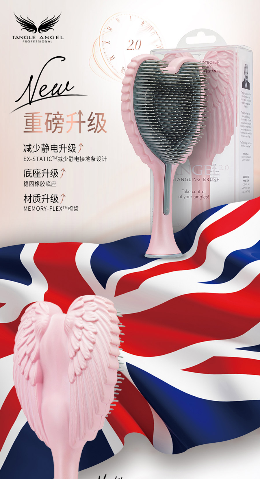 Tangle Angel天使美发梳,英国王室御用发型师Richard ward 根据自己20多年的美发经验研发推出。他不但在伦敦拥有由近90位美发专家组成的沙龙,更是凯特王妃等英国政要及众多明星御用的发型师,同时还拥有自己的专栏和电视节目,可谓称得上是时尚界的著名人物。