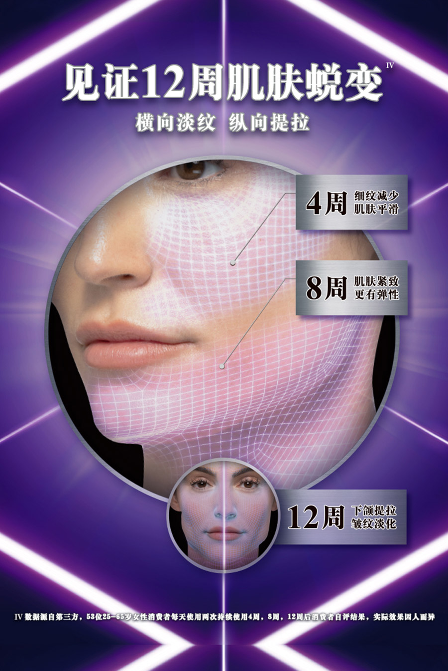 测试结果:紧致+12.3%,提拉+13.2%,淡纹-16.4%,抗皱-12.6%,细腻+13.7%,亮泽+14.2%,均匀+14.7% *数据源自第三方,53位25-65岁女性消费者每天使用两次,持续使用12周后皮肤学专家评估的结果,实际效果因人而异。
