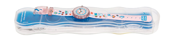 Flik Flak是全球热销的儿童手表,自1987年以来,帮助全世界的孩子们认识时间。这是第一枚以娱乐方式教晓时间概念的儿童手表。Flik Flak童表全皆是瑞士制造,使用色彩绚丽的塑料表壳和塑料玻璃,并由瑞士石英机芯提供动力。除防震外,配有织物表带的童表还可在最高40℃下水洗。