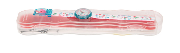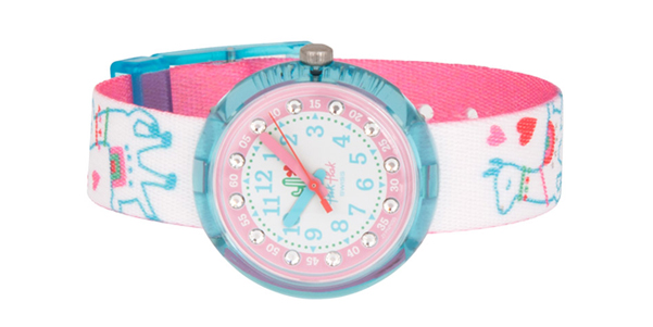 Flik Flak是全球热销的儿童手表,自1987年以来,帮助全世界的孩子们认识时间。这是第一枚以娱乐方式教晓时间概念的儿童手表。Flik Flak童表全皆是瑞士制造,使用色彩绚丽的塑料表壳和塑料玻璃,并由瑞士石英机芯提供动力。除防震外,配有织物表带的童表还可在最高40℃下水洗。