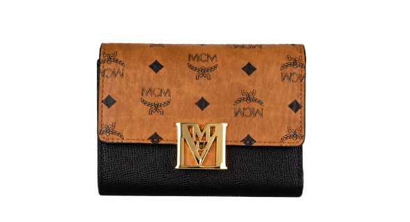 这款紧凑的三折式钱包采用牛皮及经典Visetos材料制作而成,并饰有MCM建筑风Logo。