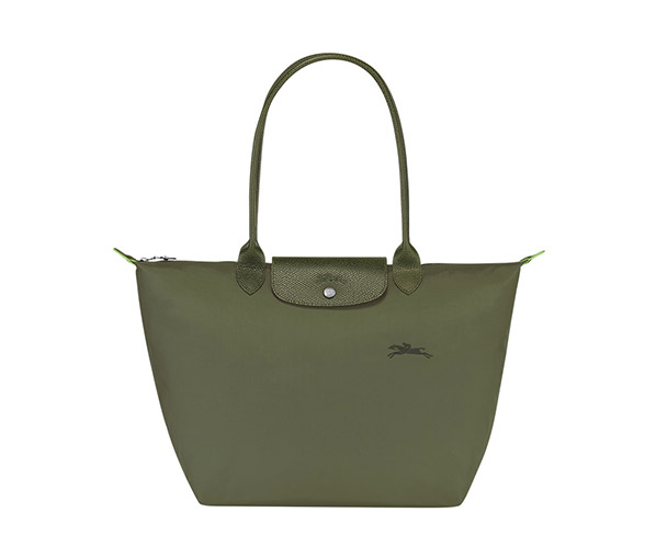 这款大容量托特包的外形非常简洁,让人眼前一亮,可以轻松容纳所有文件或一台笔记本电脑。它的提手很长,您可以将其舒适地挎在肩上,而拉链式开关设计可确保包里物品的安全。 由日本折纸术产生设计灵感,Longchamp 创造了 LE PLIAGE 系列——一种可折叠的包袋,它轻盈方便,自推出以来在全世界备受推崇。 Pliage Green 系列采用环保的再生聚酰胺帆布材质。让用过的材质重获新生,再次发光发热。 这款包包沿用骏马刺绣等经典设计元素,搭配 Longchamp 特有的同色调俄罗斯皮革饰边。 细节考究:采用象征环保材料的绿色耳边设计,与品牌标志性的鲜绿色相呼应,寓意力量、新鲜感和活力! 本系列凸显社会责任感,适合日常穿搭,体现尊重自然资源的精神。