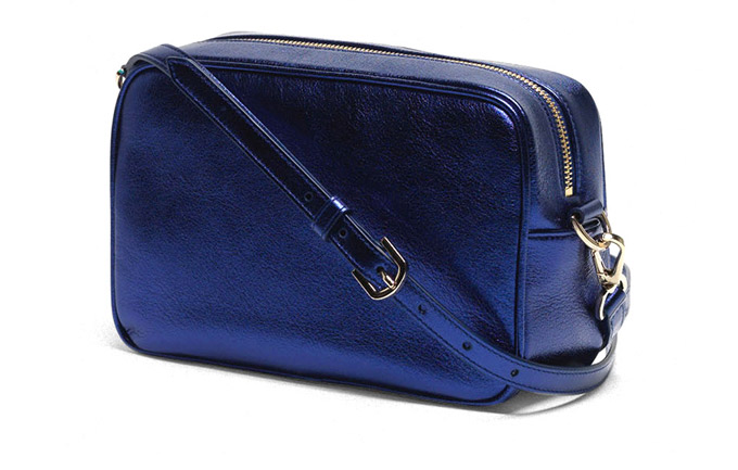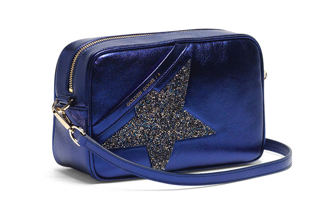 GOLDEN GOOSE创始人从老式相机包中汲取灵感,采用蓝色层压皮革精心打造出这款Star Bag,包包配有一个手机侧袋、一条可调节的肩带、提花衬里、和一个便捷的内袋。正面饰有施华洛世奇水晶星星标志,侧面还有一个经典运动鞋样式的钥匙链。Star Bag还可以搭配系列中任何一款大号手提袋。