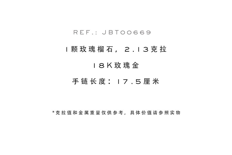 | 材质 | 1颗玫瑰榴石、2.13克拉/18K玫瑰金 | 尺寸/码数 | 约17.5cm |