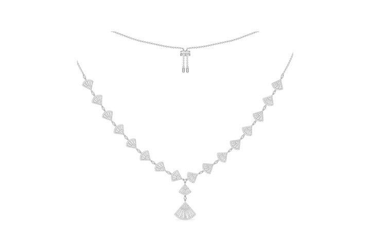 这款项链采用纯银手工制成,微镶了白色氧化锆石。