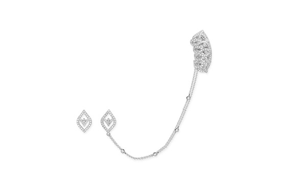 这款耳环套装以纯手工925银制作而成,并微镶白色锆石装饰。这款耳环饰有链条和闪亮的耳骨夹,打造前所未有的优雅感。为你的日常穿着增添更多哥特式的前卫感。