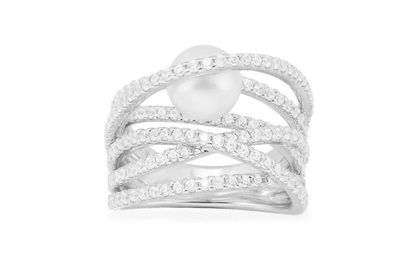将这款多圈戒指添加到你的收藏中,打造迷人风格。加上闪亮的白石和缠绕在戒指内的珍珠,让你打造出众的造型。