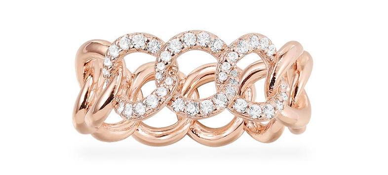 以这款设计大胆且饰有白色珠粒的粉金色纯银戒指让时髦造型更具摇滚风。精致的锁链设计让它为你的首饰盒添注全新风格,并与其他APM珠宝叠戴打造多变造型。