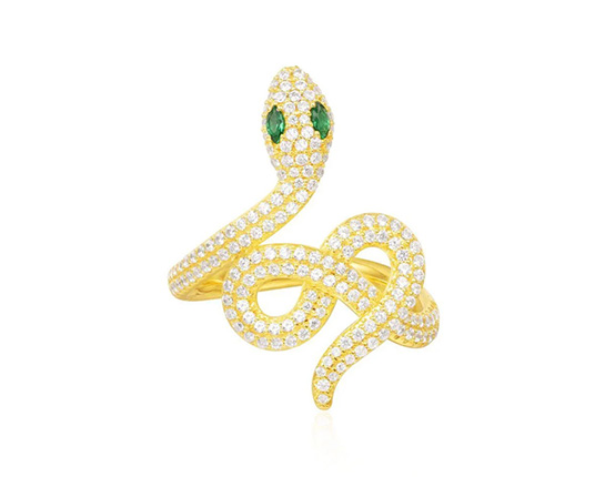 | 商品编码 | E493810 | 商品名称 | 蛇形戒指配以白色和绿色宝石 - 金黄色银 |