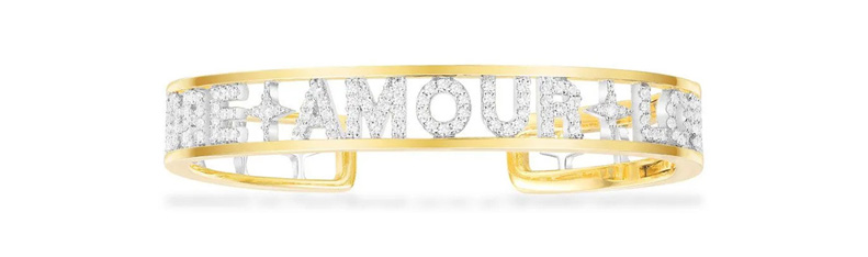 这款AMORE AMOUR LOVE(AMOUR在法文中为”爱“之意)为特色的手镯以多种语言表达你的爱意。加上闪亮石粒和黄色线条的点缀,它将为你的风格增添玩味且优雅的气息。