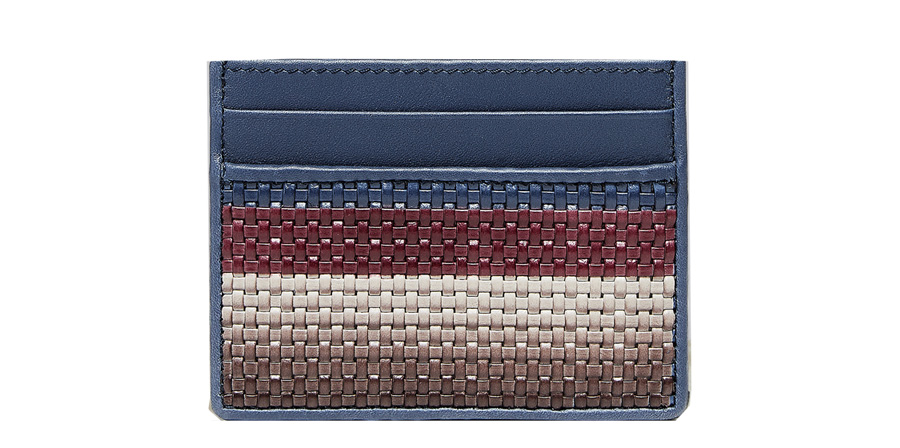 此款 PELLE TESSUTA™ 名片夹设有光滑小牛皮卡槽,营造纹理对比感,彰显品牌的精湛手工艺。