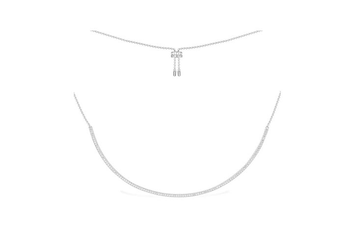 这款项链采用纯银手工制成,微镶了白色氧化锆石。