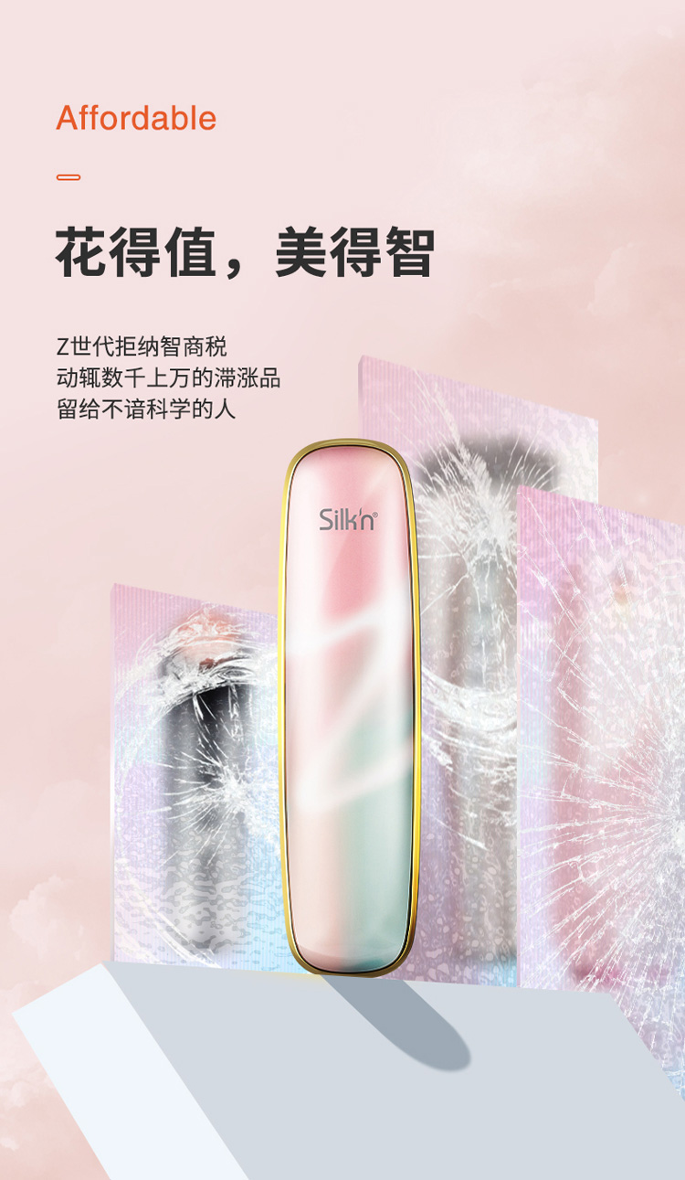 Silk'n(丝可)是来自以色列的美容仪品牌,主打产品脱毛仪,致力于为用户提供更好的家居美容护理,为您打造柔软,光滑的肌肤。Silk'n脱毛仪由医生和专家开发和设计,经过FDA专业认证,以帮助人们实现他们美丽的自我。